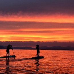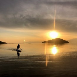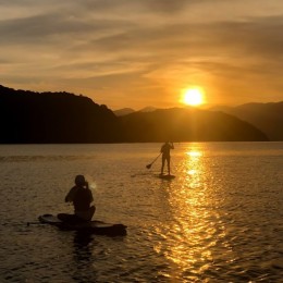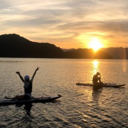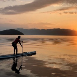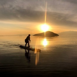 SUPの上から琵琶湖の夕日を眺めるサンセットSUP