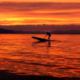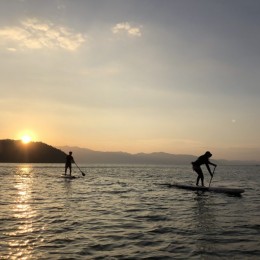 琵琶湖に沈む夕日を見ながらのサンセットSUP(サップ)夕方のサンセットタイムに合わせて、夕方前から琵琶湖でSUPで漕いで、サンセットタイムには琵琶湖の上でSUPでのんびりぷかぷか~っと夕日を眺めながらリラックスした贅沢な時間を過ごしてください。